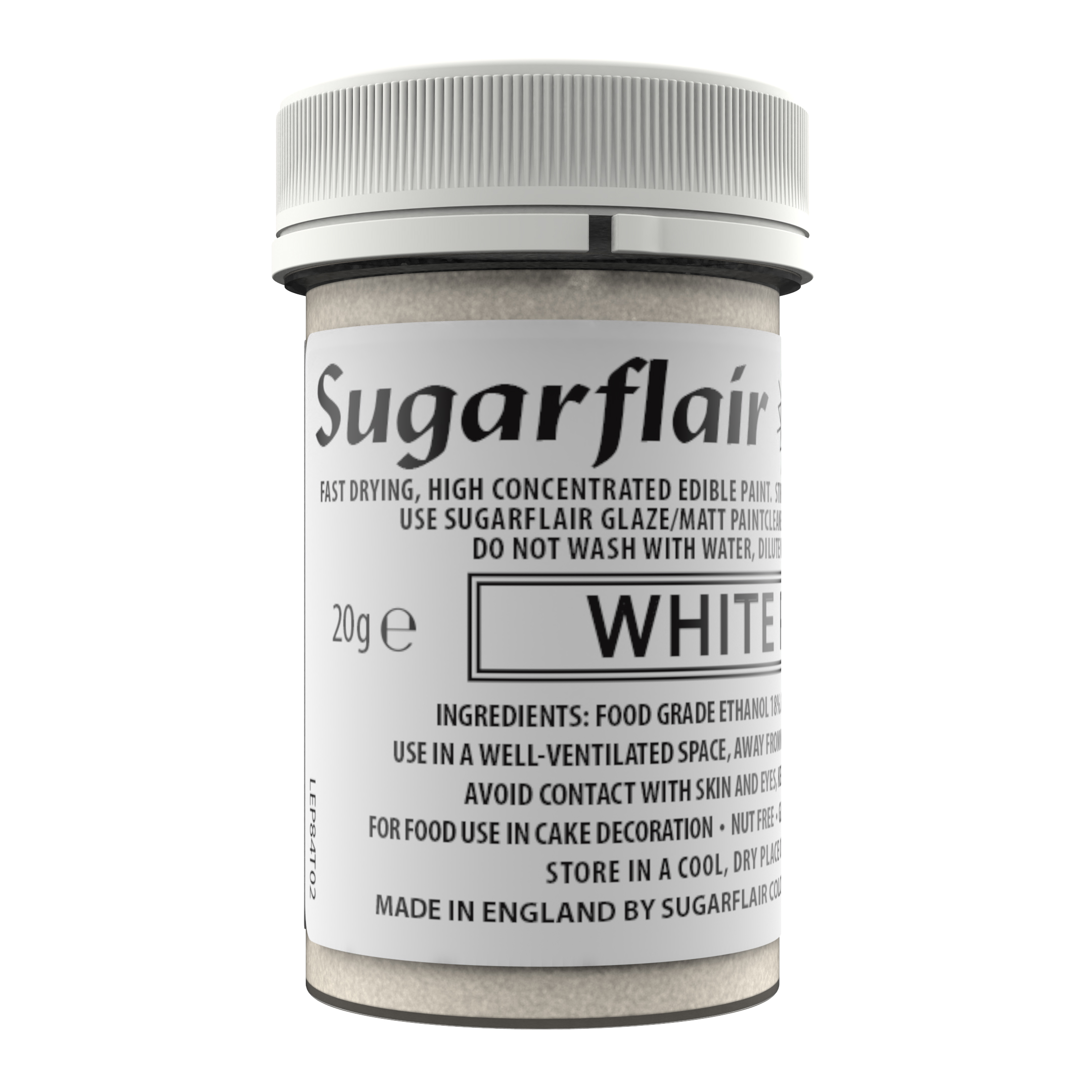 Ready to Use – Sugarflair edible Matt paint which is shellac based, can be used straight from the pot and painted directly onto sugar pastes, flower and modelling pastes, marzipan and buttercream (once set).